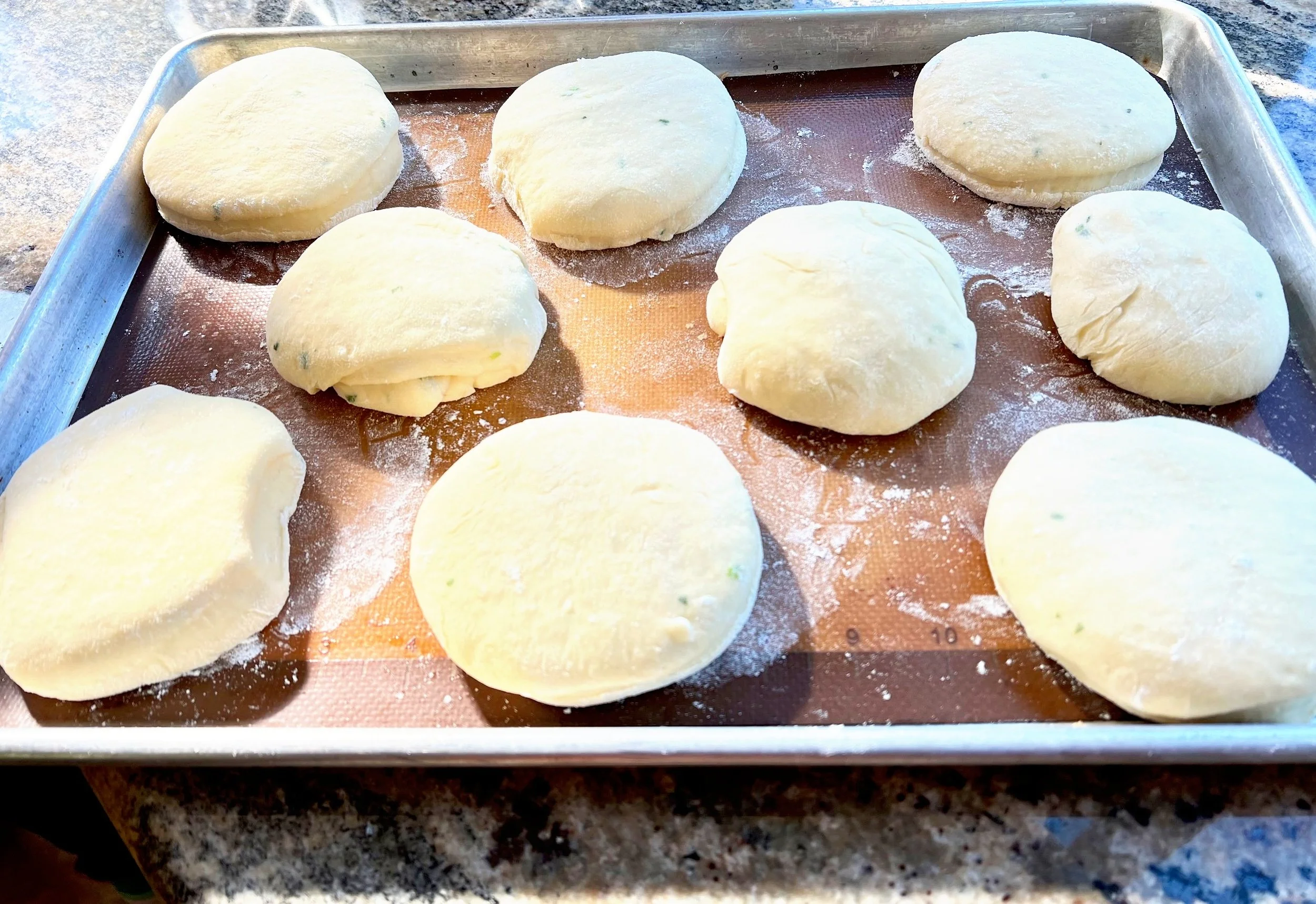 Tender rolls with a wonderful parmesan cheese and green onion flavor baked right in. These are terrific as mahi mahi burger rolls. Inspired by Erin Clarkson at Cloudy Kitchen https://cloudykitchen.com/blog/cheese-spring-onion-and-chive-brioche-buns/