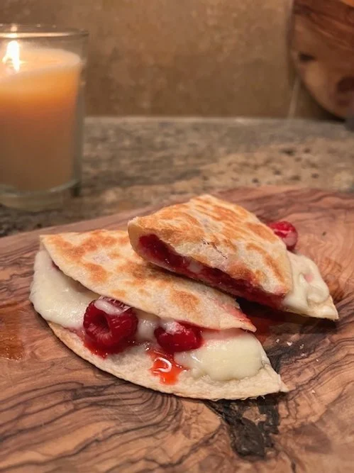 Tart raspberries and melty jack cheese meld into a fabulous quesadilla with a crunchy wrap.