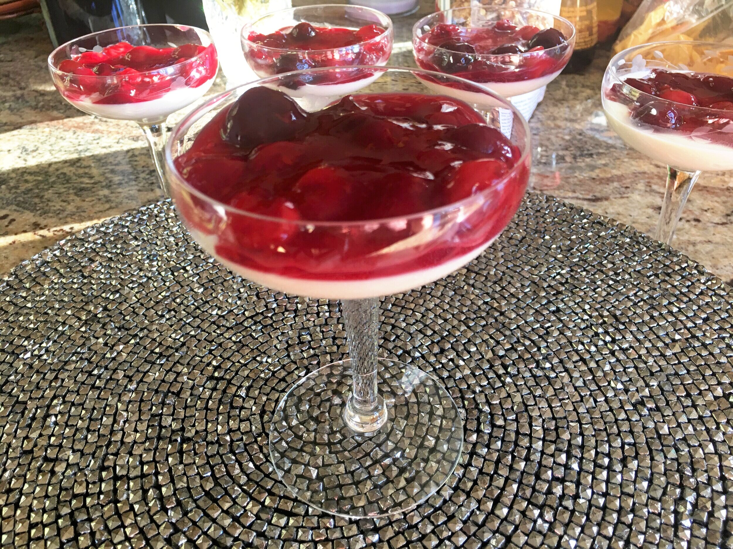 Lovely vanilla panna cotta topped with a cherry compote with notes of lemon and cinnamon. The recipe is quick and easy to make but requires 4-5 hours of refrigerator time for the gelatin to set. Can be made 1-2 days ahead. Recipe inspired by Lara @ The Classy Baker https://theclassybaker.com/cherry-panna-cotta/#wprm-recipe-container-2047