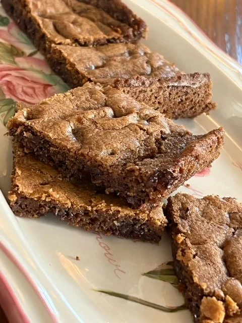 Preheat oven to 350*. Butter or spray oil a 9.13” baking pan. Cream butter and sugar in a stand mixer for about 2 minutes or until light and fluffy. Scrape down the bowl with a rubber scraper and add in the vanilla and eggs. Whisk flour, baking soda, and salt together in a mixing bowl, and add to the creamed butter mixture. Top with the chocolate chips and walnuts. Mix on low until the batter just comes together. Scrape the bowl down with a rubber scraper to incorporate any unmixed butter. Spread evenly in the prepared baking pan. Bake for about 30 minutes, the top will be golden and lower than the dark golden outer edges. Remove from the oven and let cool for another 30 minutes before cutting into 12 bars. These bars are best on the first day (while the chocolate pieces are still a bit gooey and warm). Store any leftovers in an airtight container.