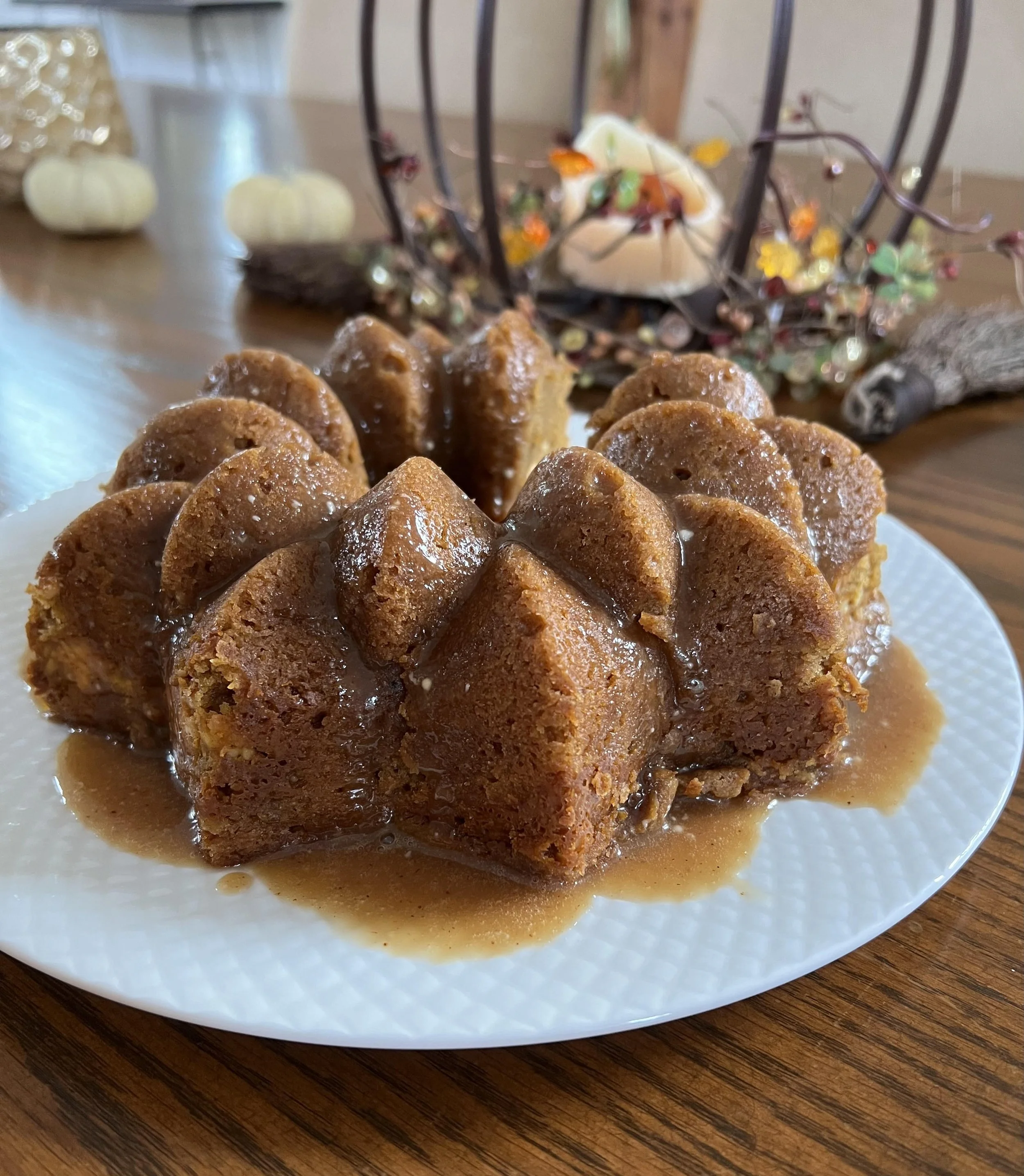 Preheat oven to 350*. Butter a bundt or 8” square baking pan and sieve a dusting of flour on top through a mini strainer. Whisk the flour, sugar, spice, salt, and baking powder in a mixing bowl. Melt the butter and whisk with oil, pumpkin, egg, and vanilla. Pour the liquid over the dry ingredients, and fold in with a rubber scraper until just combined. Pour half of the batter into the prepared pan. Whisk the cream cheese swirl ingredients together, then spoon on top of the batter swirling in with a knife tip or toothpick. Pour the rest of the batter on top, swirl some more, and smooth. Bake for 40-45 minutes. A toothpick tester should come out batter-free and an insta-thermometer should read a minimum of 200*. Allow to cool for 10 minutes before releasing from a bundt pan onto a serving plate/board (you can leave them in the square pan if slicing into bars). Whisk the milk, espresso powder, and salt together. Sift powdered sugar on top and mix in with a whisk. Cool the cake completely before glazing.