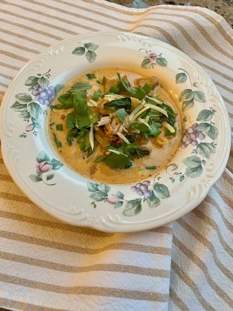 Marry-me chicken soup is made with spices, fresh herbs, sun-dried tomatoes, spinach, some cream, and pasta shells. Perfect for these wintry days. Inspired by my daughter, Audrey, who sent me this video by Alexrioscooks on Instagram https://www.instagram.com/p/DDaVA7eyr6z/?hl=en